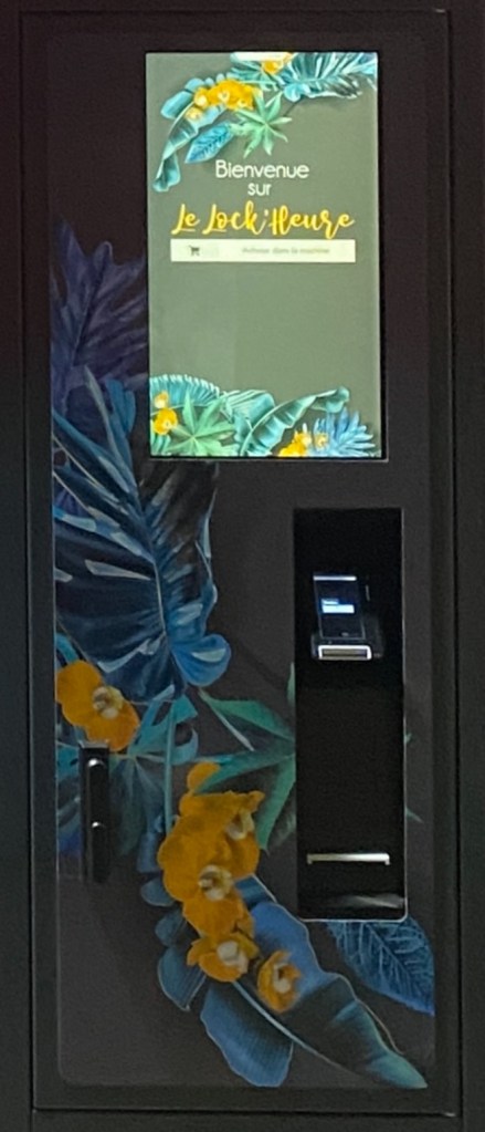 Le distributeur de fleurs est muni d’un écran tactile, vous retrouverez sur celui ci le numéro des casiers avec le montant du produit contenu dans chaque casiers, cliquez sur le numéro de votre choix, procédez au paiement et la porte de votre casier s’ouvrira afin que vous puissiez retirer le bouquet de fleurs ou la plante que vous aurez choisi. Il ne vous reste plus qu’a refermer le casier et voilà. Paiement accepté Carte bleue et sans contact.