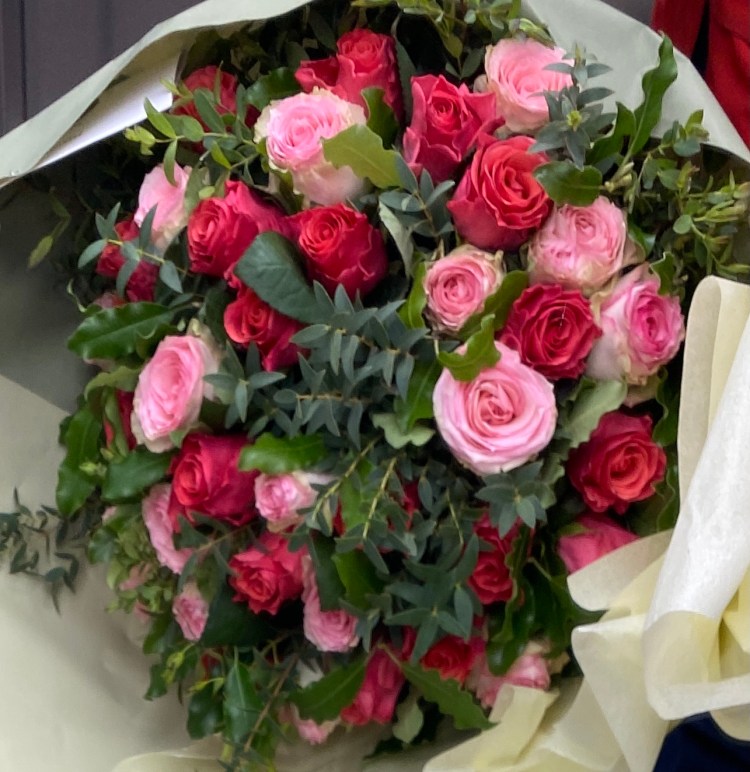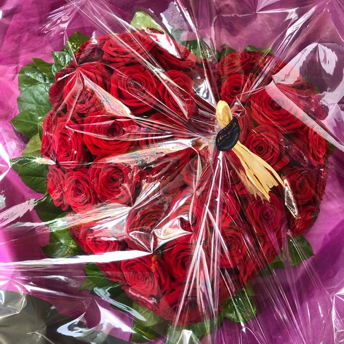 Il est également possible de faire livrer un bouquet de fleurs partout en France grâce à la transmission florale, un fleuriste partenaire s’occupera de respecter votre demande même quand il faut voir les choses en grand comme avec ce bouquet de 50 roses rouges retiré cette fois directement par le client à la boutique après avoir passer sa commande par téléphone.